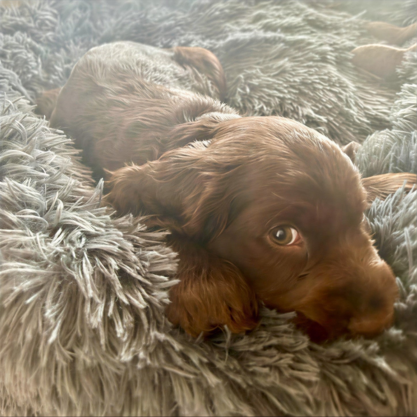 The ultra-soft plush material and raised edges work together to create a safe, nest-like space dogs instinctively love.